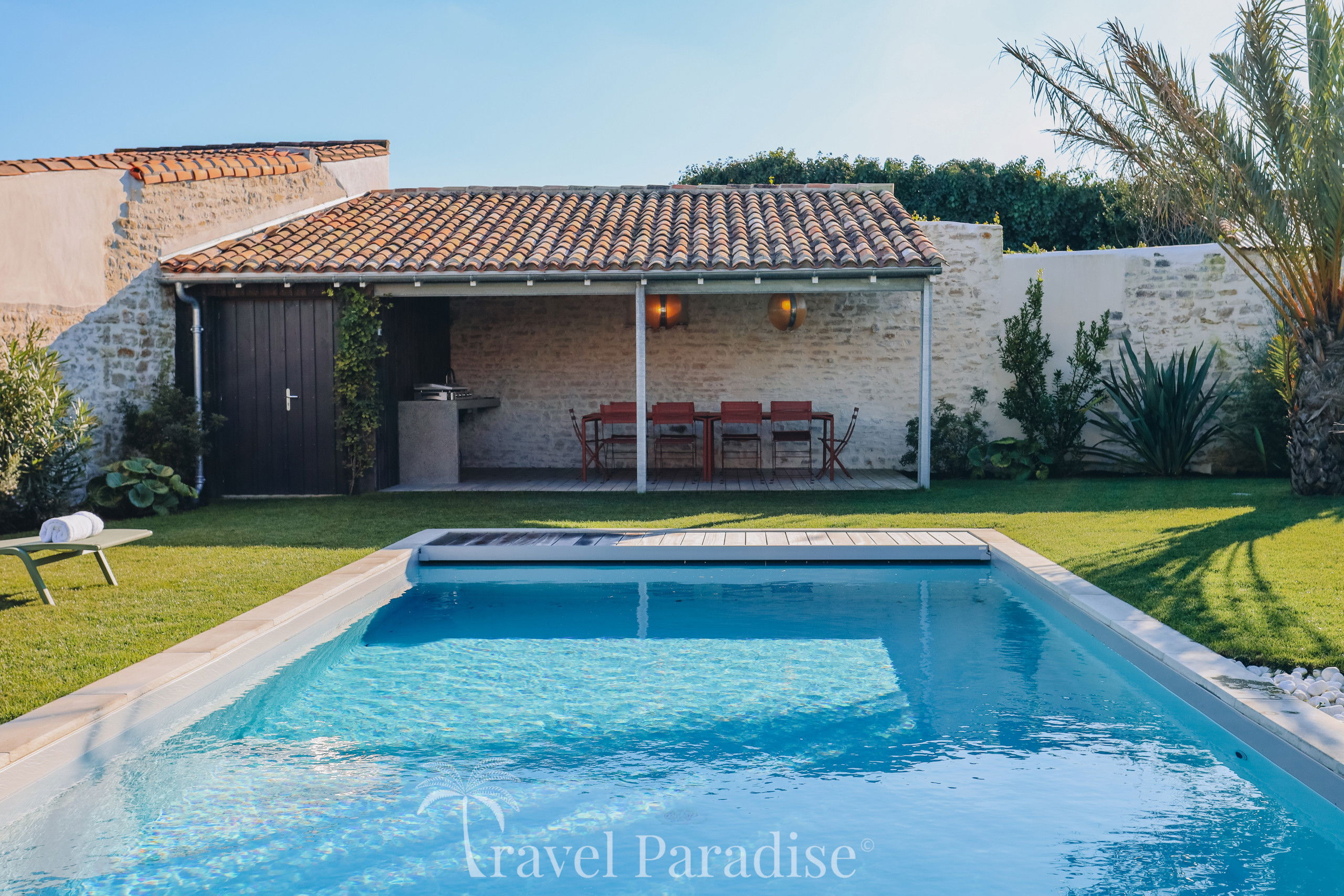 Die Unterkunft verfügt über garten, gartenmöbel, umzäuntes grundstück, terrasse, waschmaschine, trockner, grill, kamin, bügeleisen/-brett, internet (WLAN), haartrockner, heizung, klimaanlage in allen schlafzimmern, klimatisierter pool privater pool, parkplatz im freien in auf dem grundstück, 1 Fernseher, sat-tv (Sprachen: Englisch, Französisch), radio.