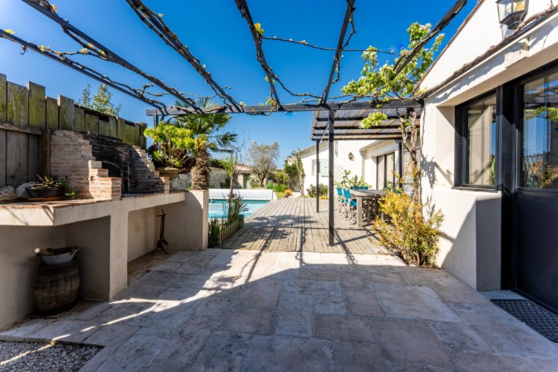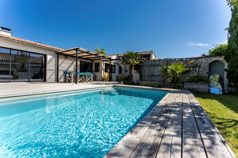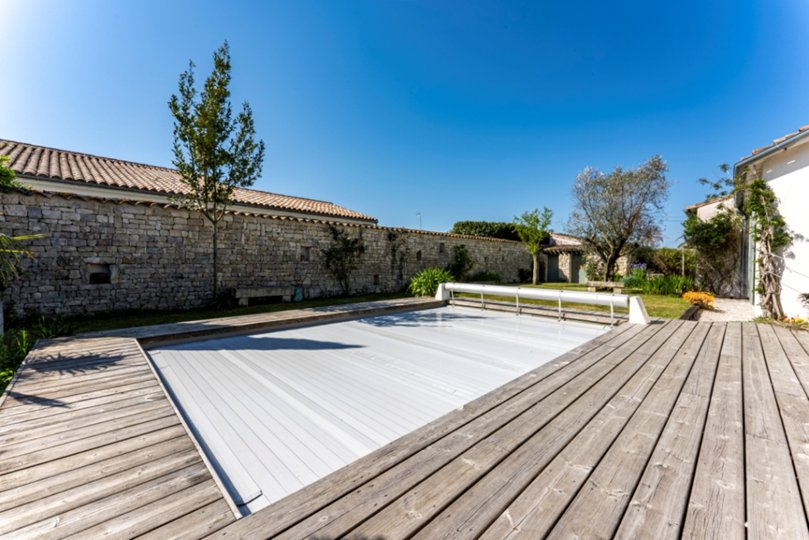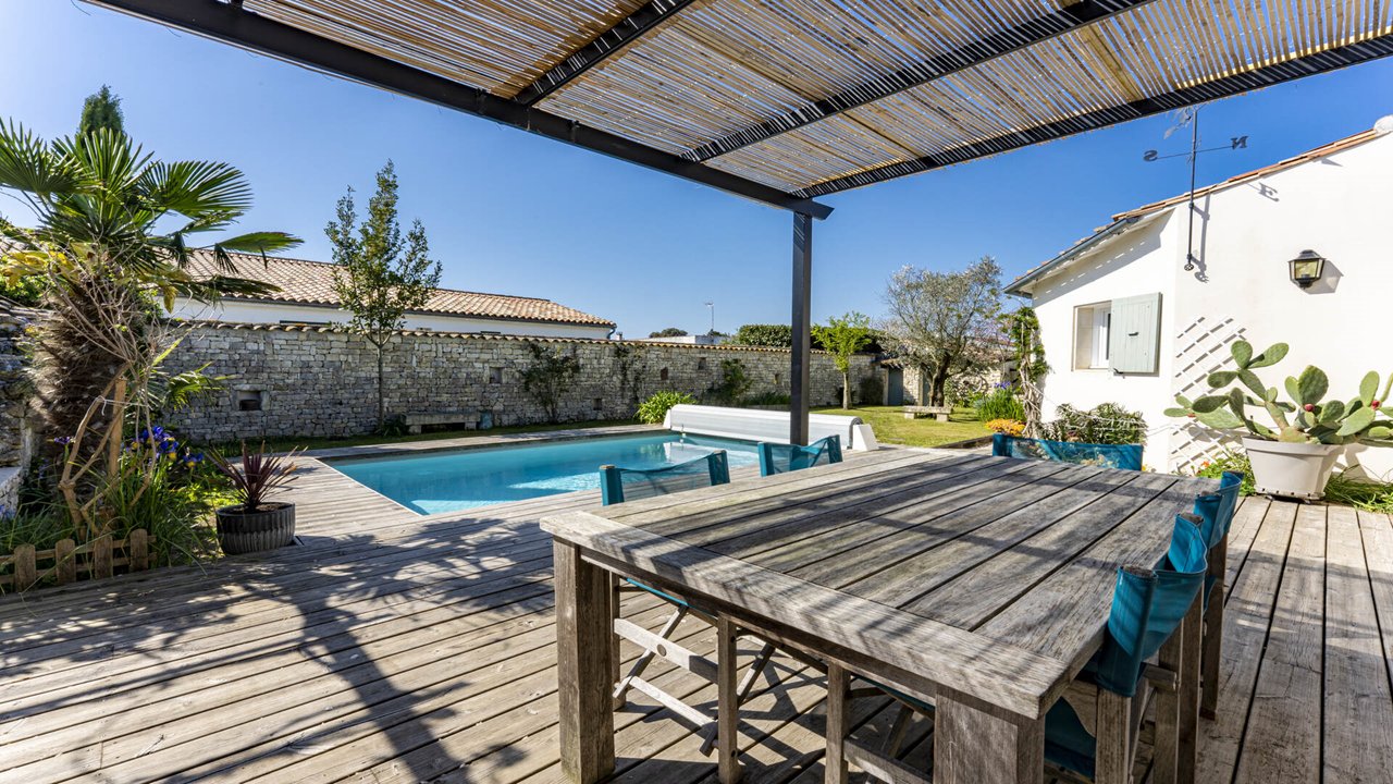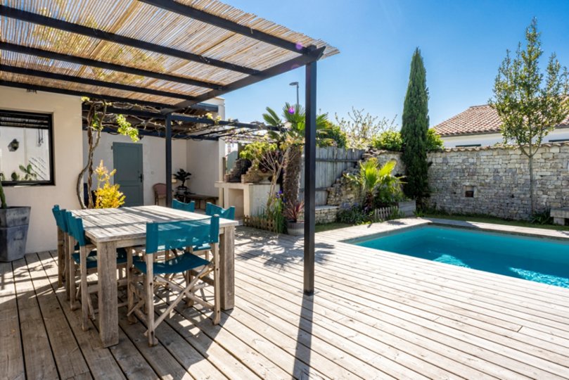 Sie können den Swimmingpool und den Garten in Südlage sowie die Holzterrasse für Ihre Mahlzeiten im Freien voll ausnutzen.