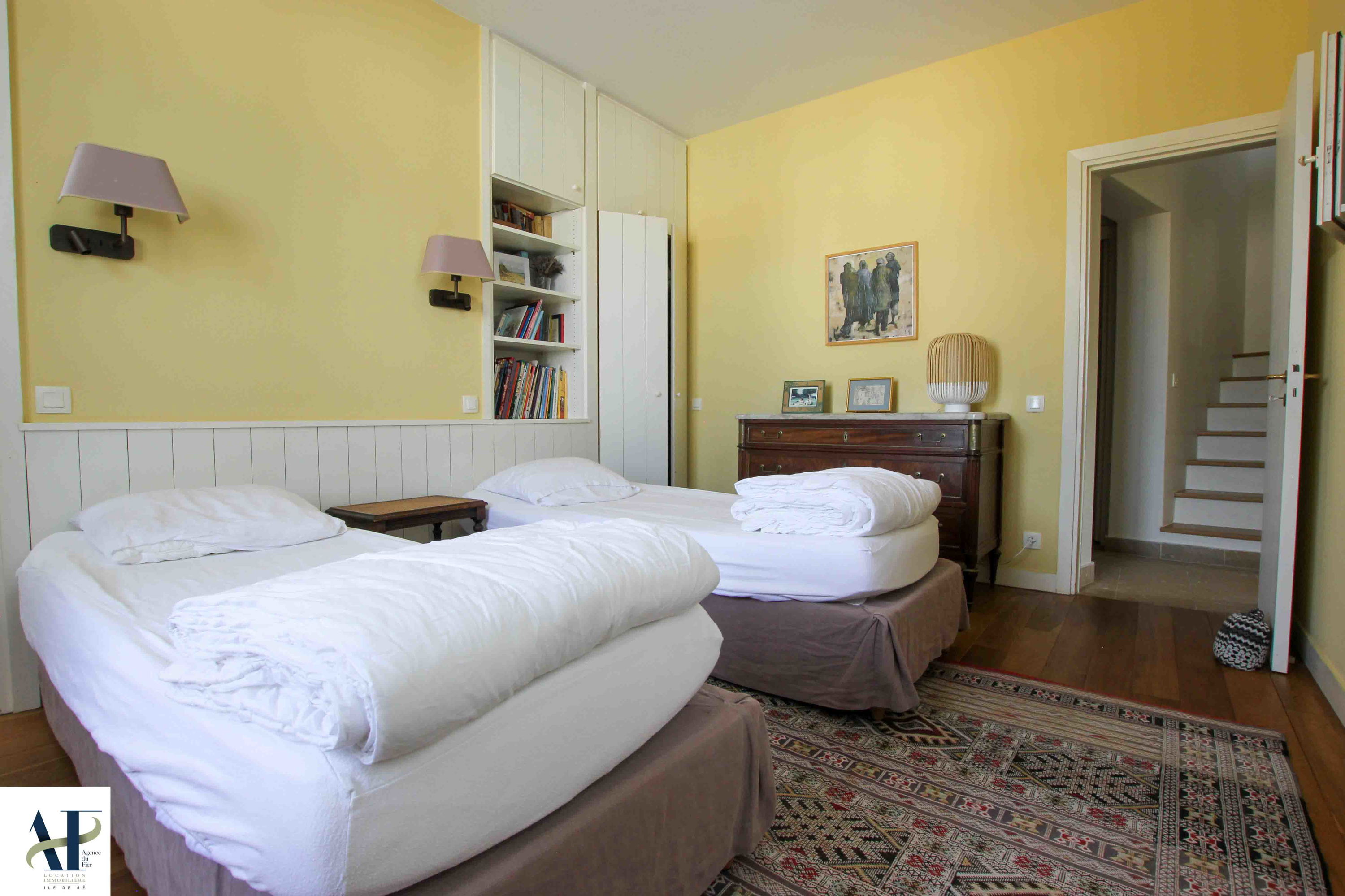 Zimmer 16 m2 mit 1 Bett von 160, Schrank, Dusche mit Waschbecken und WC - Schlafzimmer 23 m2 mit 1 Bett (160 cm), Schränke (davon 1 geschlossen), Büro-Ecke, Dusche mit Waschbecken und separatem WC