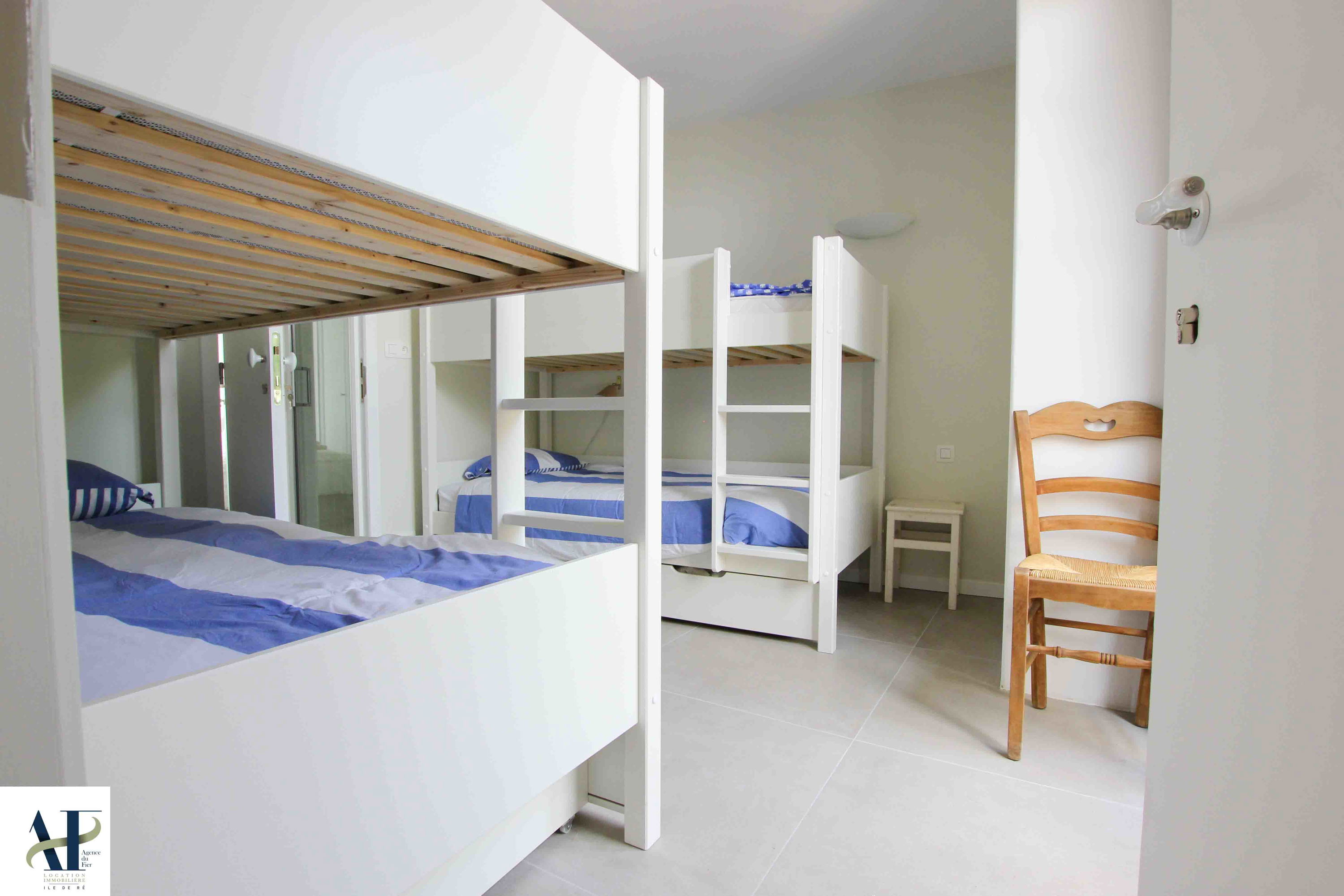 Aufenthalt von 45 m2 mit Kamin und einbauküche Ausgestattet - Schlafzimmer von 12 m2 mit 1 Bett 160, Stauraum - Schlafzimmer von 13 m2 mit 2 Betten 90, Schränke - Schlafzimmer von 10 m2 mit 2 Betten 90, Schränke - Badezimmer mit dusche und Waschbecken - separates WC
