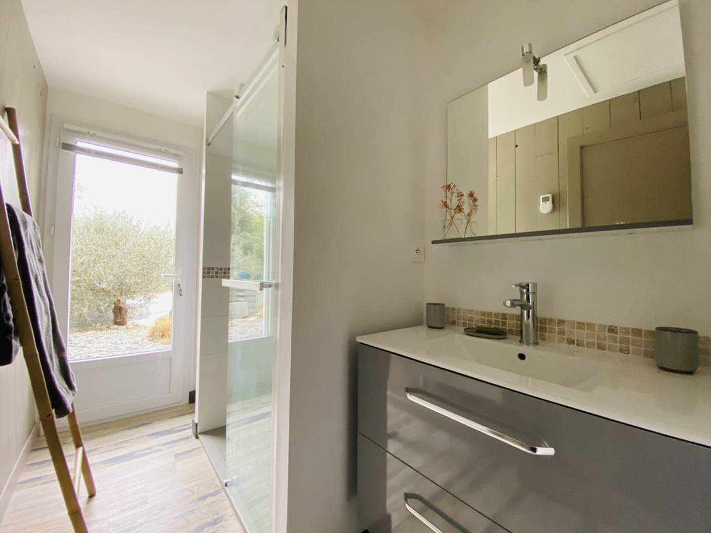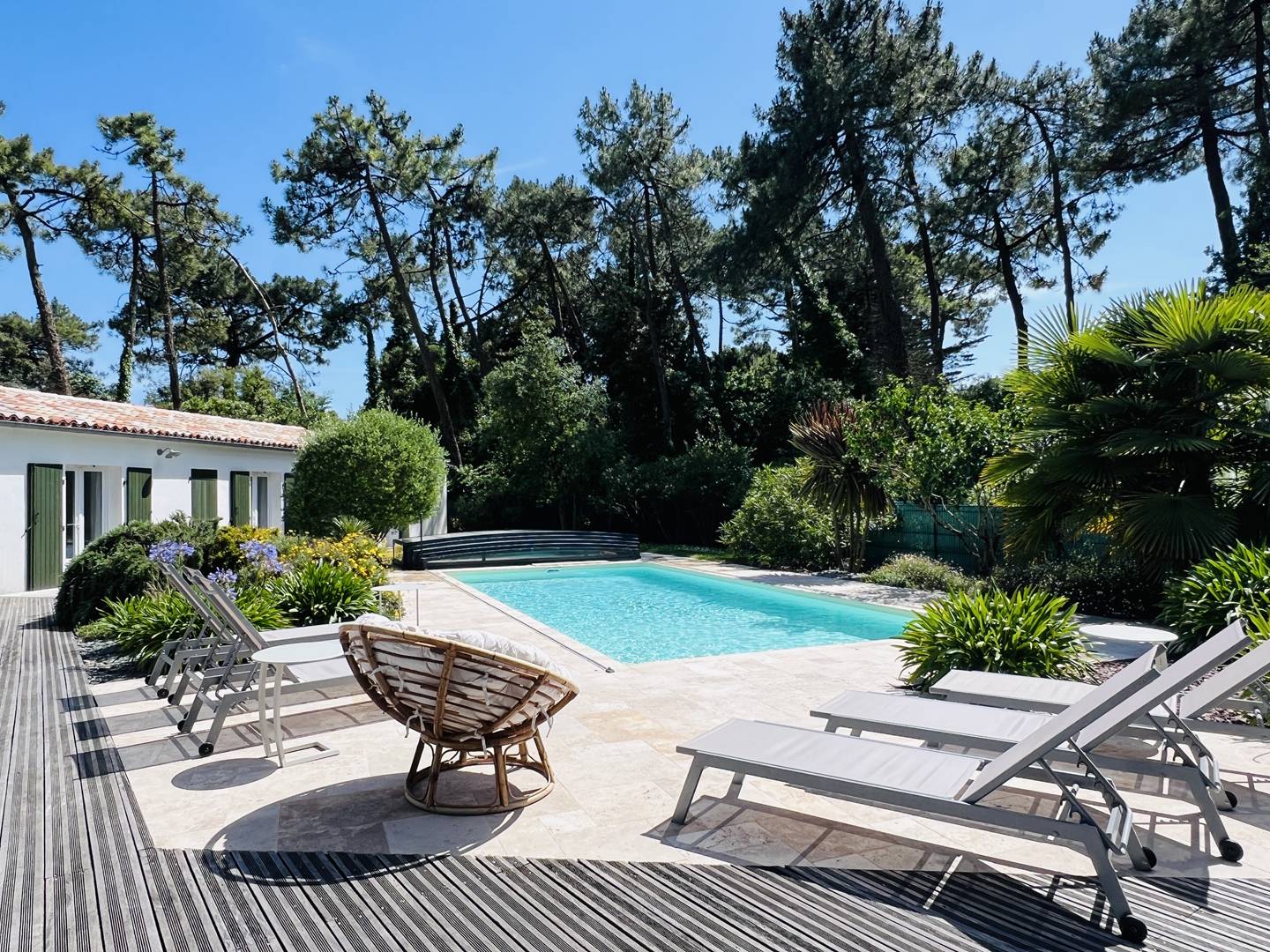 Sehr schöne Villa komplett renoviert, geschmackvoll eingerichtet in einer privilegierten Umgebung, auf einem Grundstück von über 1400 m². Eine schöne Wohnfläche von knapp 55 m² mit Kamin/Holzofen, offen zur Küche mit Werkstatterker, sehr gut ausgestattet, viel Stauraum ergänzt durch eine 10 m² große Speisekammer. Der Nachtbereich besteht aus 4 Schlafzimmern, davon 1 mit Dusche und WC, und einem schönen Hauptschlafzimmer mit Ankleide / Bad und WC. 1 unabhängiges Badezimmer, 1 unabhängige Toilette Garage 9x4 Schwimmbad durch Elektrolyse, beheizt und sicher.