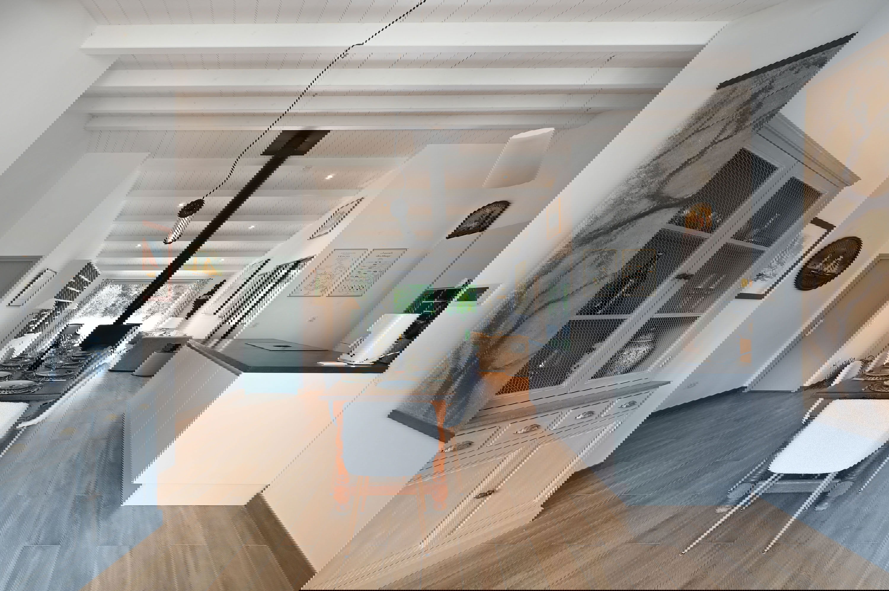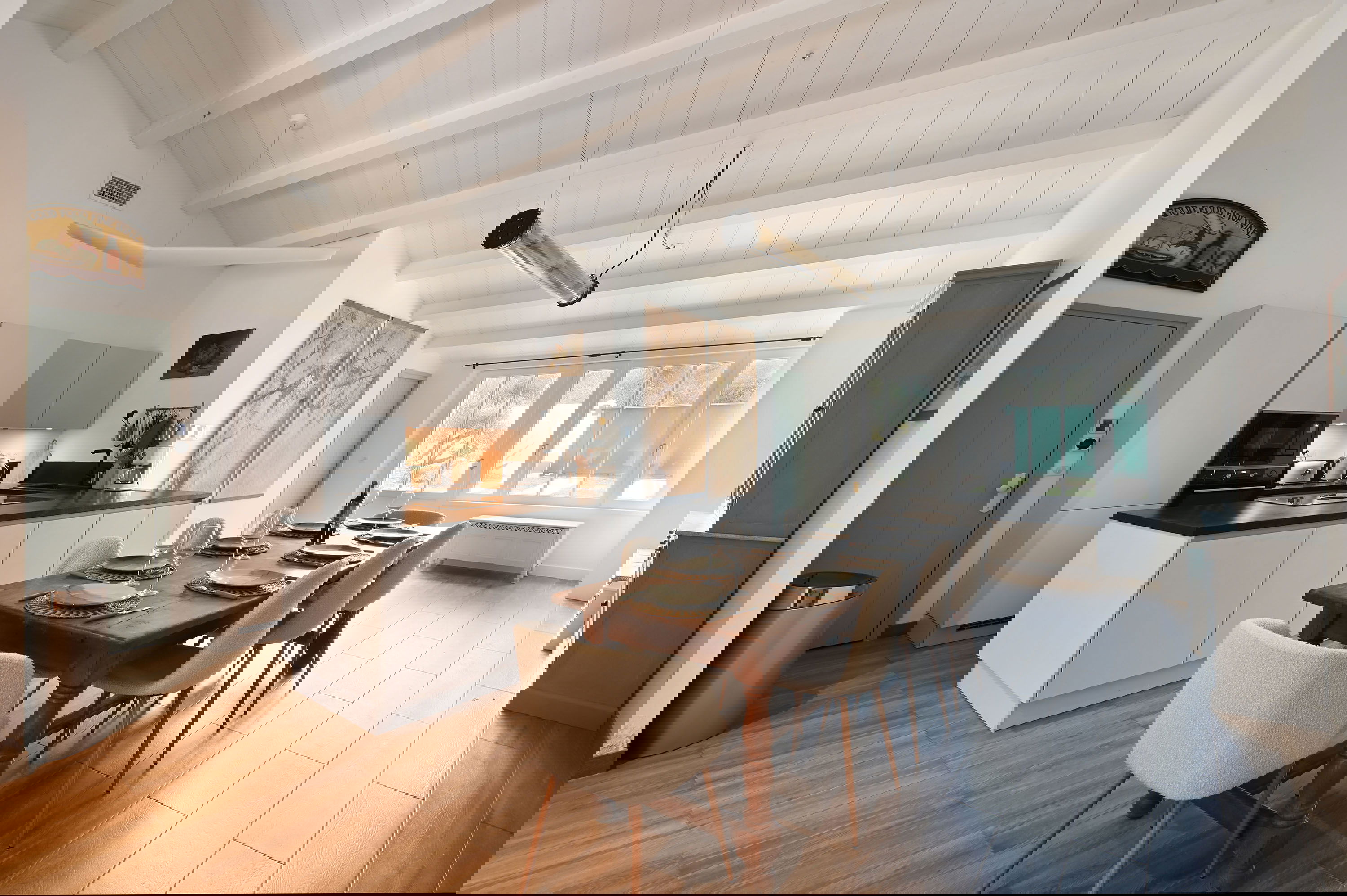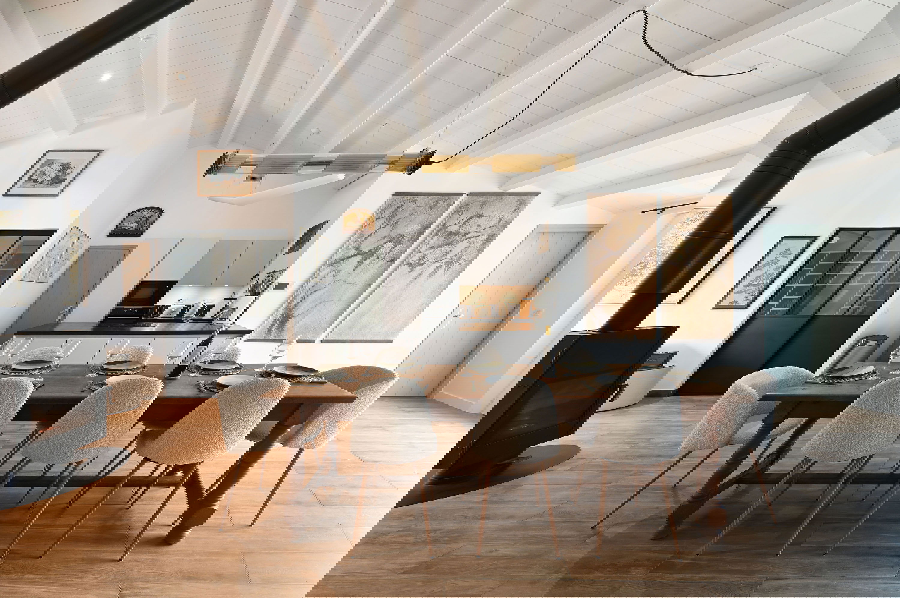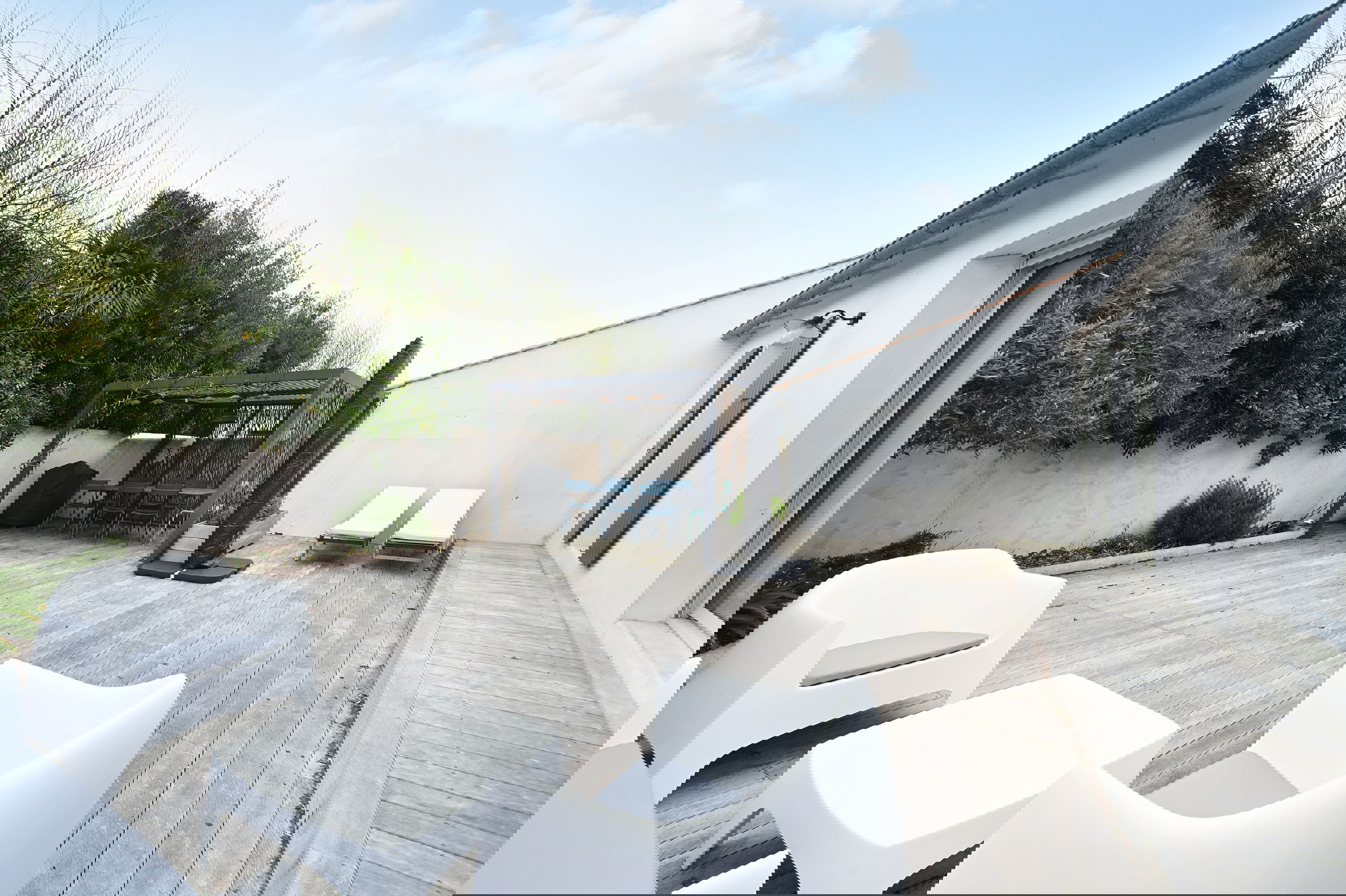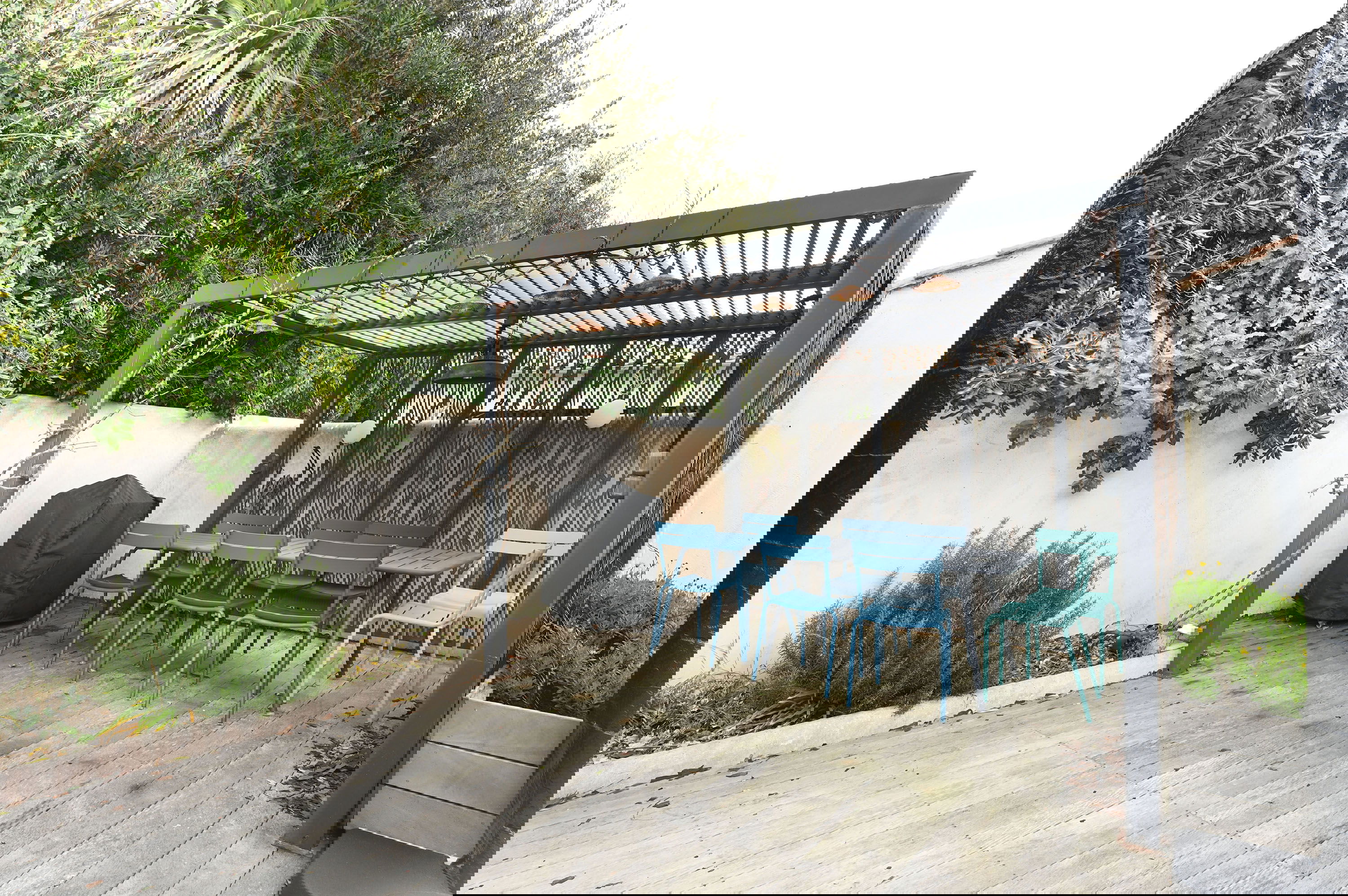 Geselligkeit ist das Schlüsselwort in diesem hellen Wohnzimmer. Bestehend aus einer offenen Küche, einem Essbereich und einem Wohnzimmerbereich, alle mit Blick auf den Eingangshof und die hintere Terrasse. Letzterer verfügt über eine Pergola für Mahlzeiten im Sommer sowie über Möbel zum Entspannen. Für Ihren Komfort im Sommer steht Ihnen eine Klimaanlage zur Verfügung.