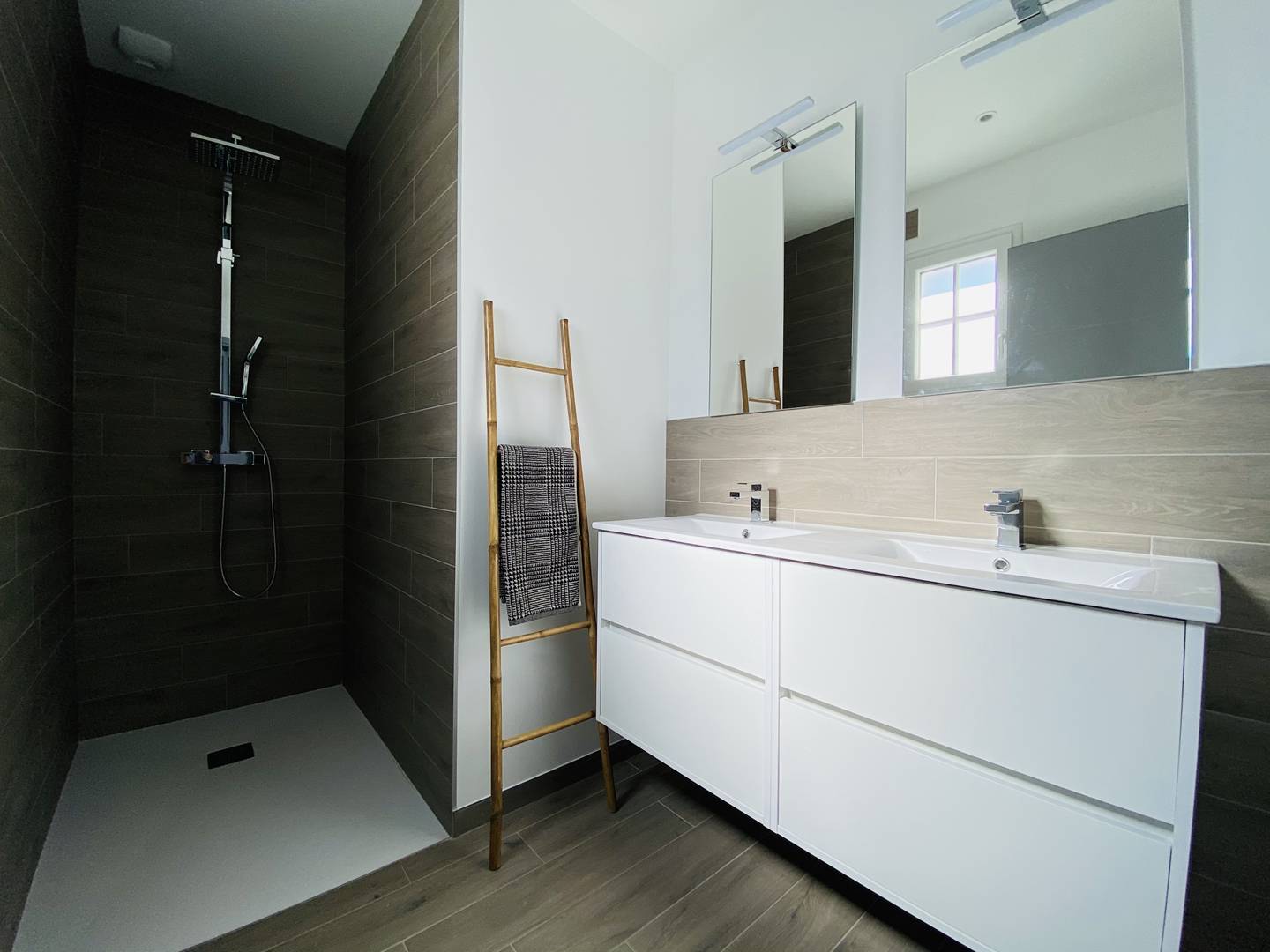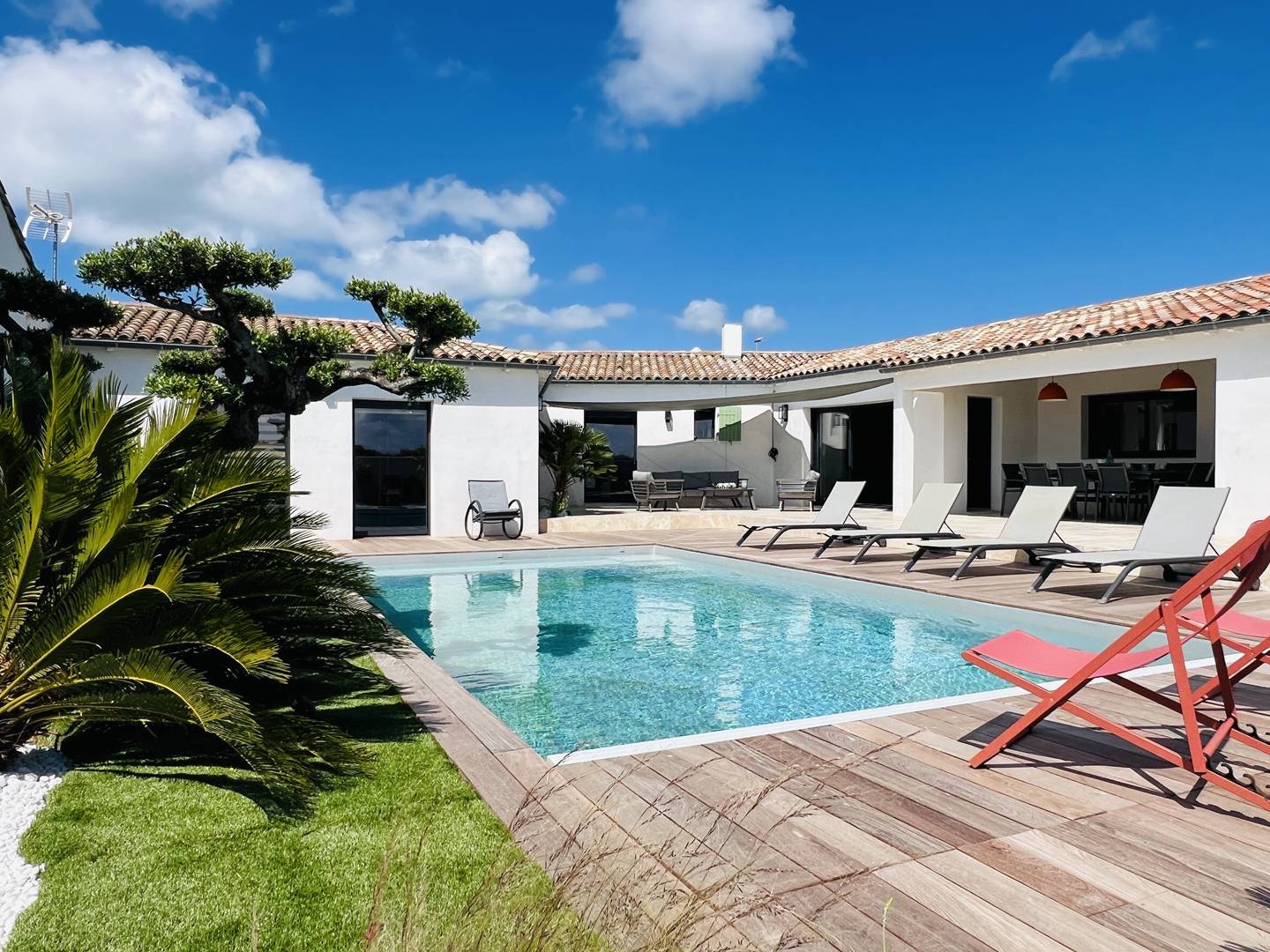 Kommen Sie und tanken Sie neue Energie in dieser herrlichen neuen ebenerdigen Villa, geschmackvoll eingerichtet, ruhig gelegen, mit Meerblick von der Küche aus! Sie werden die Volumina der zum Garten hin offenen Wohnräume mit beheiztem (wetterabhängig zu Beginn und Ende der Saison) und sicherem Swimmingpool schätzen und werden vom Komfort und der Qualität der Ausstattung wie dem großen verführt werden Sofas, die zur Nutzung einladen, die Einbauküche und der Sommerhof zum Mittag- und Abendessen mit Blick auf den Swimmingpool. Der Schlafbereich verfügt über vier Doppelschlafzimmer, darunter eine Mastersuite mit 180x200cm Bett und Bad, zwei weitere Mastersuites mit 160x200cm Betten und Badezimmer, ein Doppelzimmer mit 160x200cm Bett und ein Doppelzimmer mit Sofa umwandelbar in ein 140x200cm Bett . Die Küche ist sehr gut ausgestattet mit Induktionskochfeld, Dunstabzugshaube, Backofen, Mikrowelle, Spülmaschine, Kühlschrank sowie die hintere Küche mit Waschmaschine und Trockner. Draußen eine herrliche Südterrasse, Liegestühle, Tische und Stühle zum Essen, Gartenmöbel für Aperitifs und Plancha. Sie können Ihr Fahrzeug innerhalb der Villa (Garage) und kostenlose Parkplätze vor dem Haus parken.