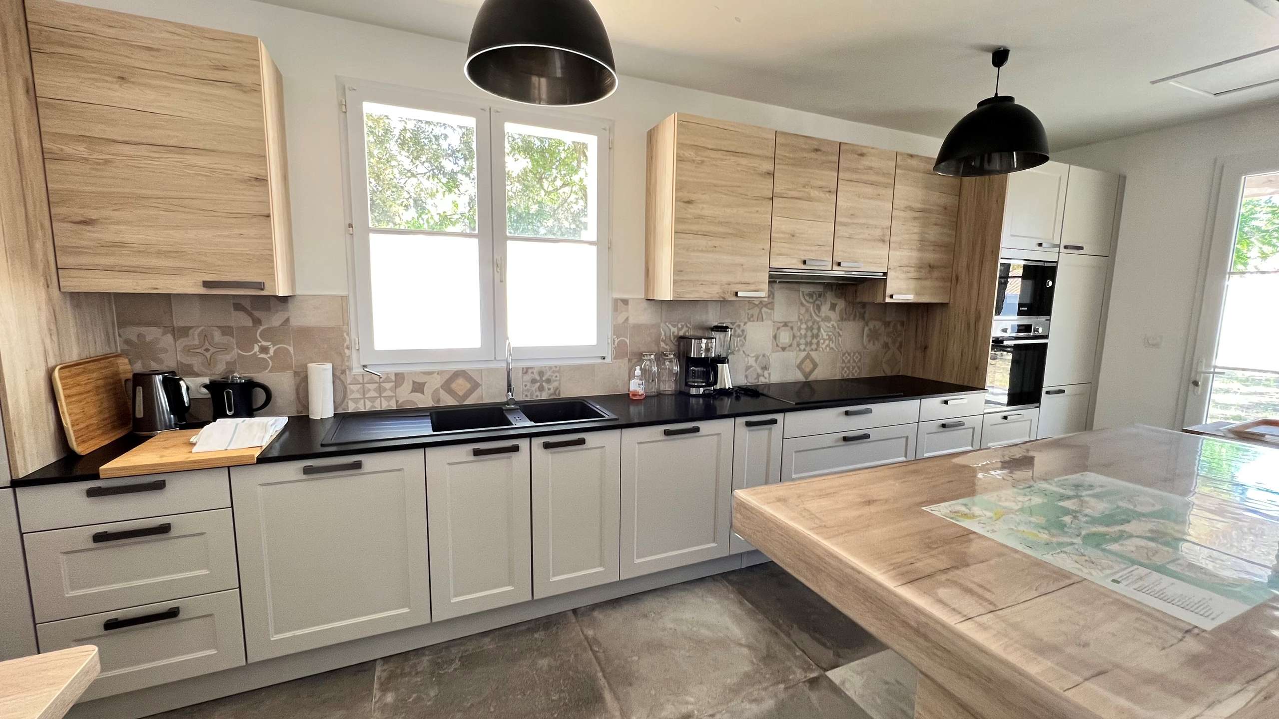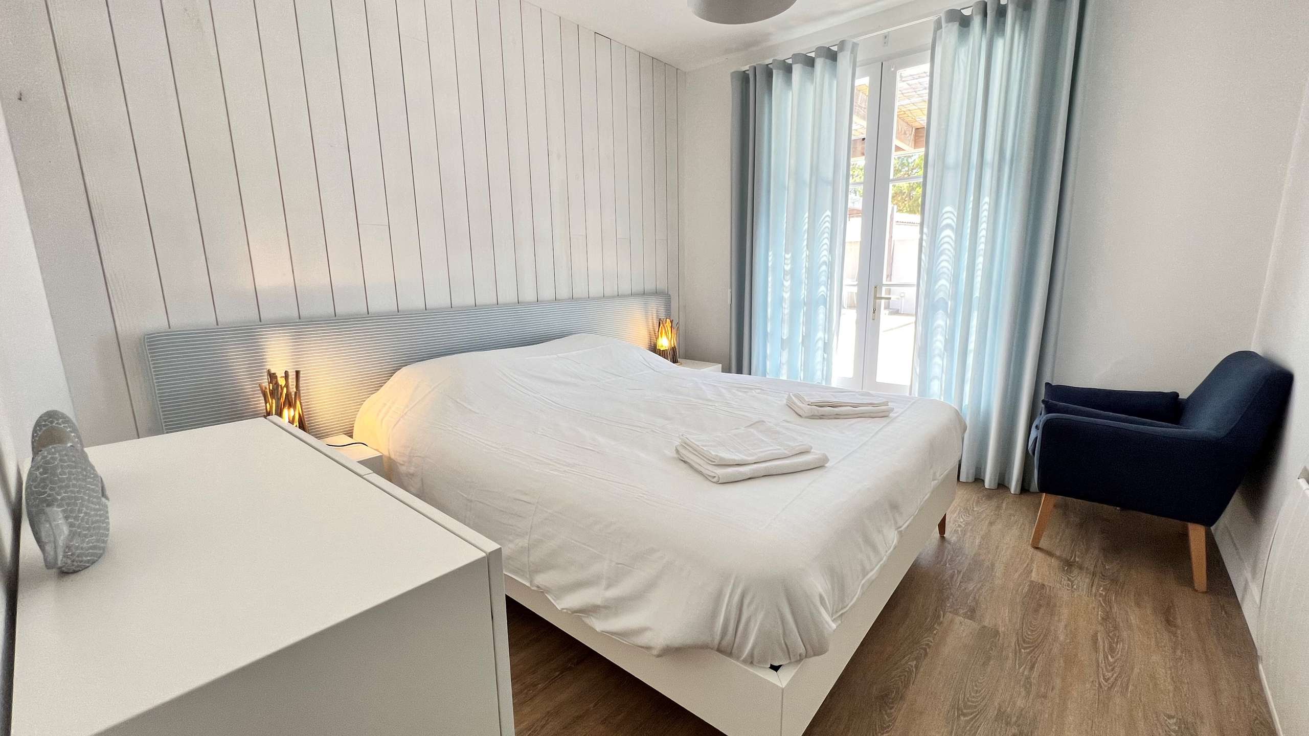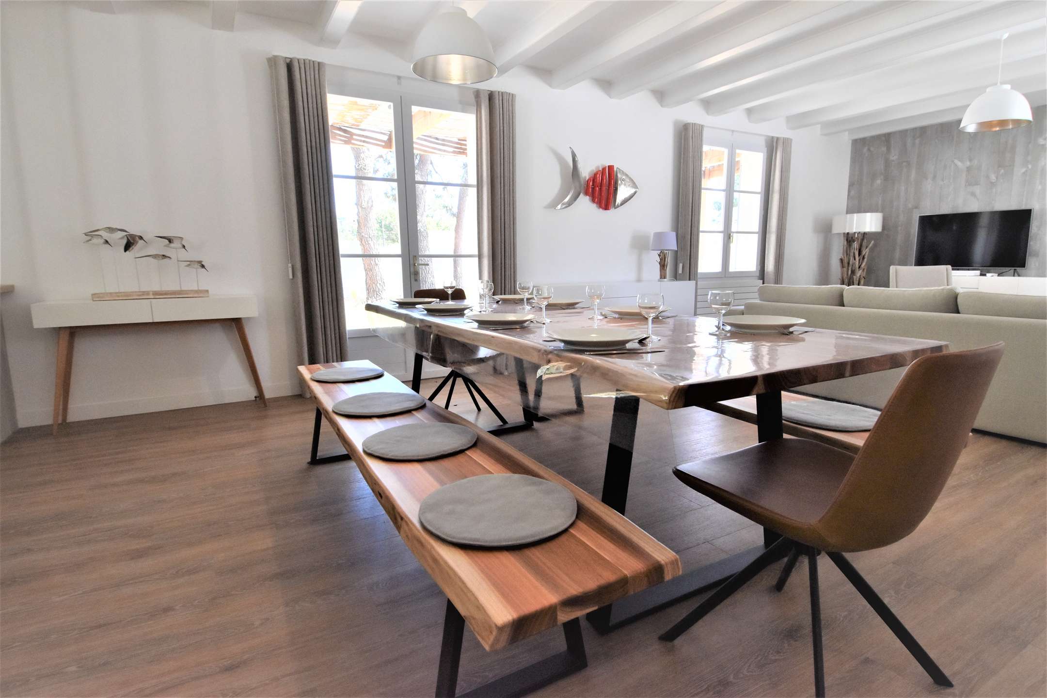 Hervorragende komplett renovierte Villa mit Pool in Strandnähe Hervorragende komplett renovierte Villa mit Pool in Strandnähe bestehend aus: EINGANG von 2,76 m² mit Blick HAUPTRAUM (Ost / West) 52,48 m² mit einem Wohnzimmer: einem Sofa, 2 Sesseln, einem Sideboard, ein Fernseher, ein Buffet. Wohnzimmer mit Esstisch, Bänken und Stühlen. Küchenbereich mit Spüle, Induktionskochfeld (4 Flammen), Backofen, Mikrowelle, Kühlschrank, Gefrierschrank, Abstellraum. 7,5m² Flur führt zu: SCHLAFZIMMER 1 (Süd) 10,57m² mit 1 Bett x 160, 1 Sessel, Kommode, Nachttische. SCHLAFZIMMER 2 (Süd) 10,44m² mit 1 Bett x 160, 1 Sessel, Nachttische, Kommode. BADEZIMMER (Nord) 6m² mit Doppelwaschbecken, Dusche, Waschtisch, Stauraum. Separates WC. SCHLAFZIMMER 3 (Nord) 9,7m² mit 1 Bett x 160, Nachttischen, einer Kommode, einem Hängeschrank (Regale + Kleiderschrank). RUHERAUM (Süd) 14,92 m² mit Sofa, Couchtisch, Sideboard. BADEZIMMER (blind) 2 m² mit Dusche, Waschbecken, Toilette. SCHLAFZIMMER 4 (Süd) 17,8 m², Schlafsaal mit 2 x 2 Etagenbetten. AUSSEN: ein großer Gartenbereich mit Wüstenpflanzen, eine Sommerküche unter Pergolen, Gartenmöbeln und Liegestühlen. Beheiztes SWIMMINGPOOL (geöffnet vom 15. Mai bis 15. September): 10m x 4m, geschützt durch einen elektrischen Vorhang. KABELLOS. Bettwäsche und Endreinigung inklusive.