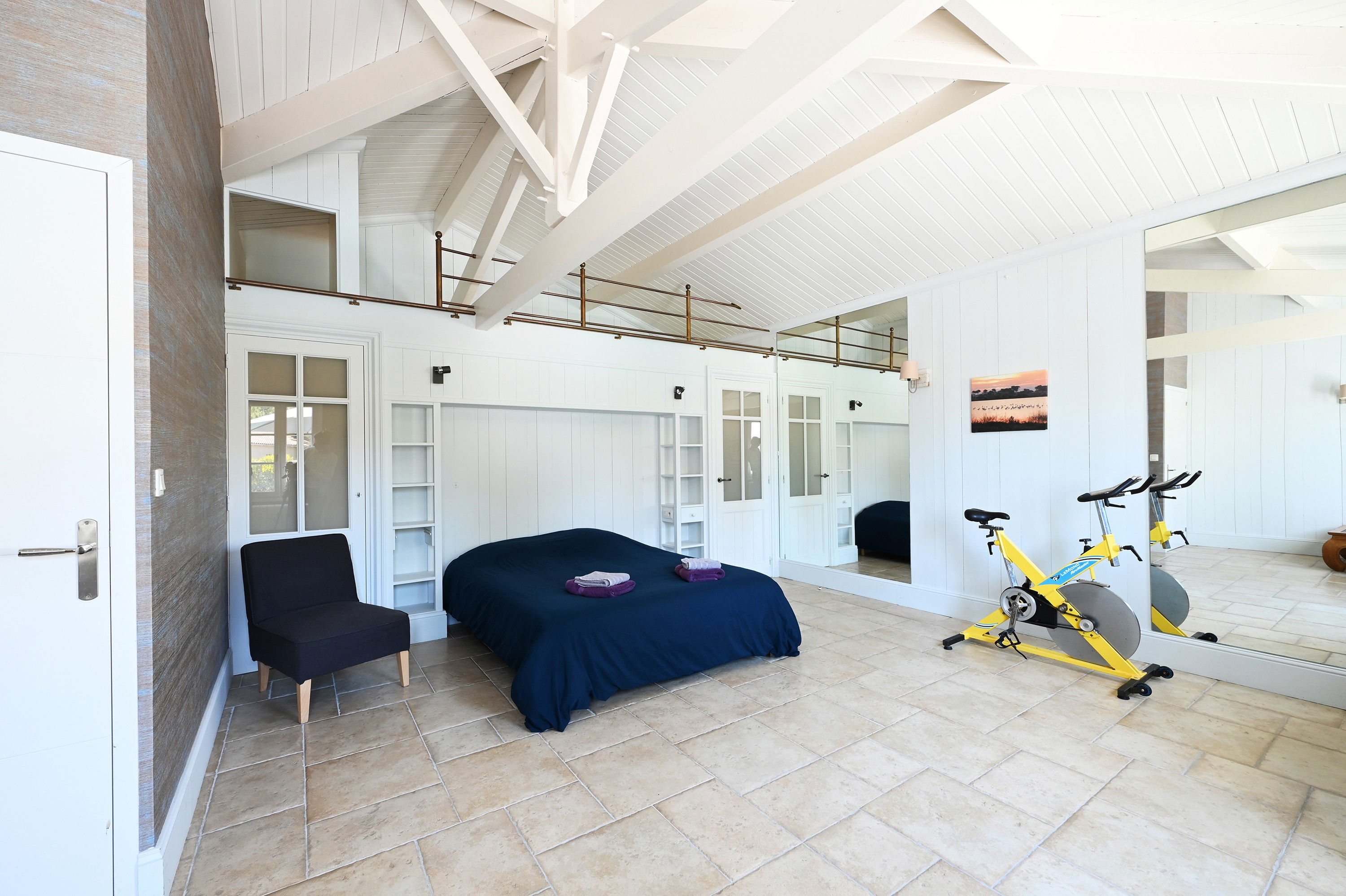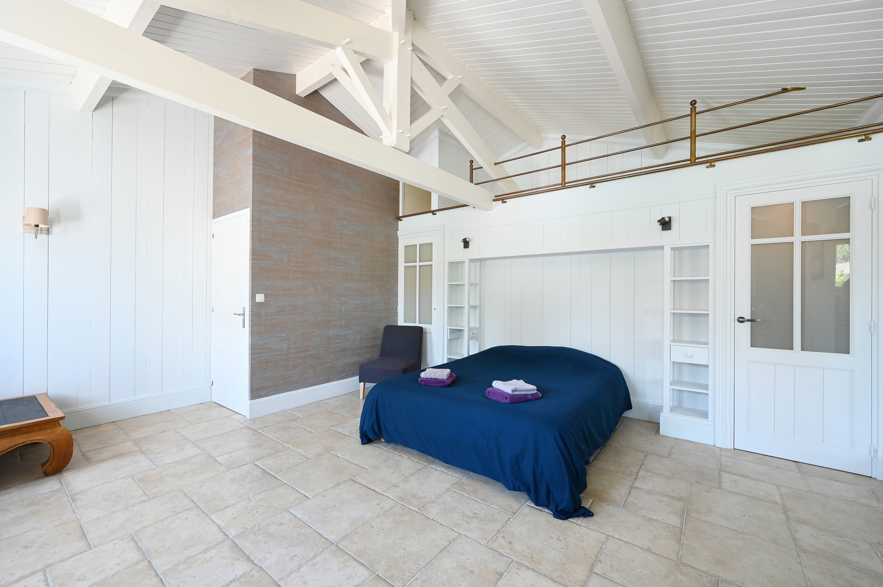 - 2 Suiten: Jede von ihnen hat ein Doppelbett (160), ein Ankleidezimmer, ein Badezimmer, ein WC und einen direkten Zugang zum Garten oder zu einem Innenhof.