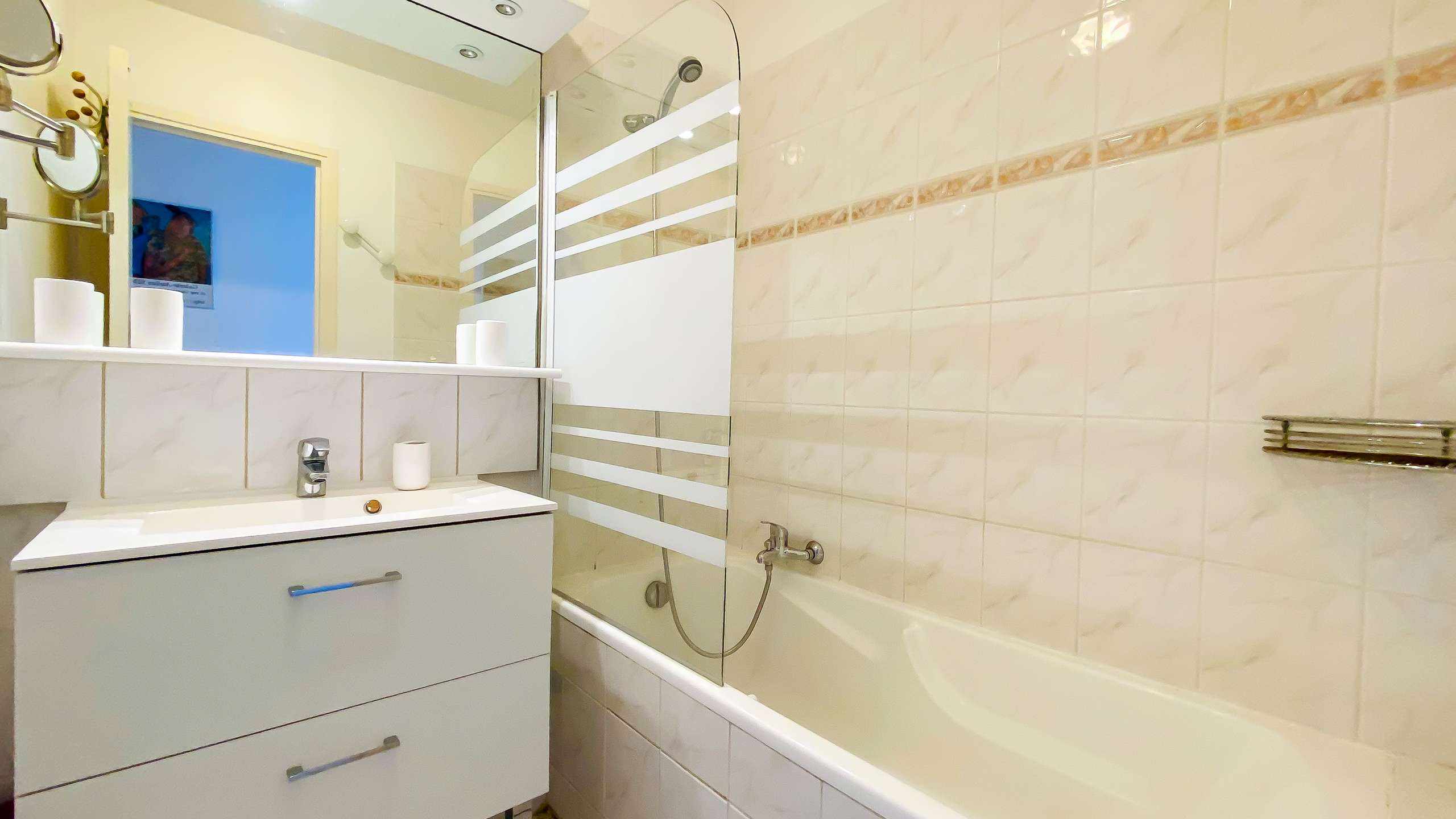 BADEZIMMER (blind) 2.78m2 mit einer badewanne, einem waschbecken, stauraum